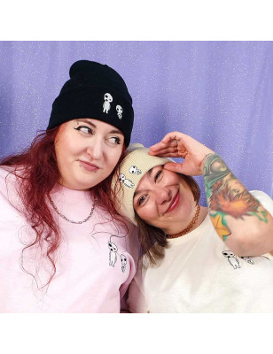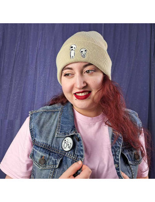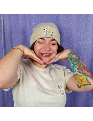 Un bonnet tout doux, habité par la magie des forêts de Princesse Mononoke 🌿. Avec ses deux petits kodamas phosphorescents, il te tiendra chaud le jour… et brillera doucement la nuit ✨