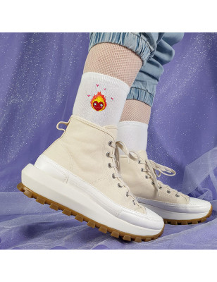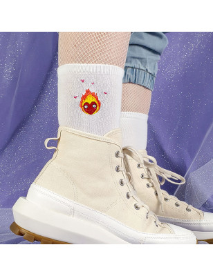 La broderie représente Calcifer, l’adorable démon du feu du Château ambulant, dessiné ici en forme de cœur. 💖🔥 Une touche kawaï qui apporte de la magie jusque dans tes tenues les plus simples.